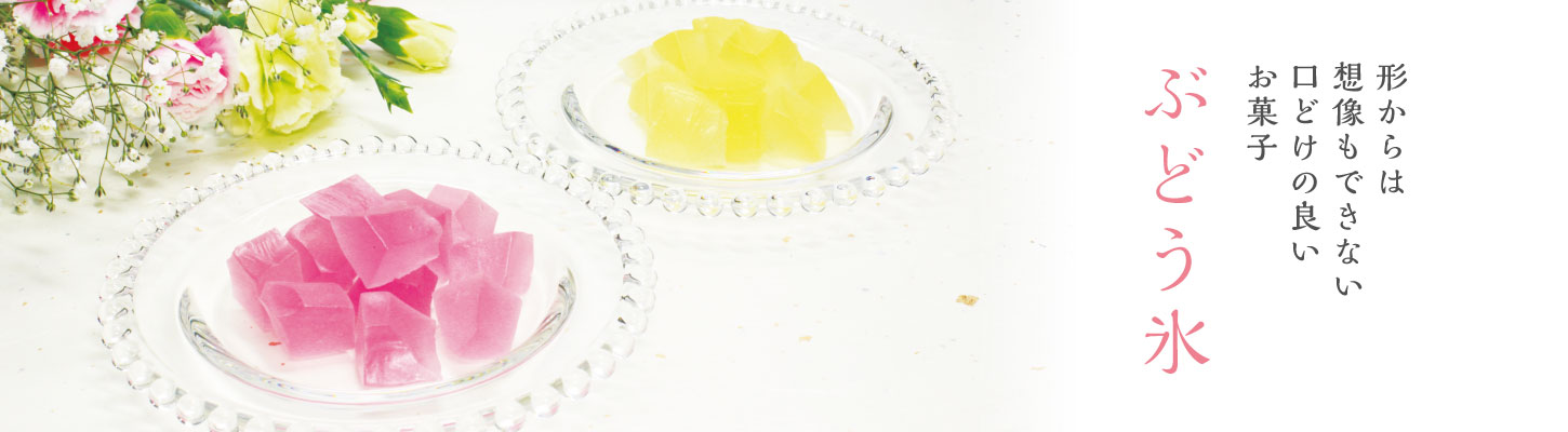 宝石のように高尚な銘菓「ぶどう氷」は、京菓子をもとに、独自の製法と長年にわたり培われた技術により作り出された一品でございます。