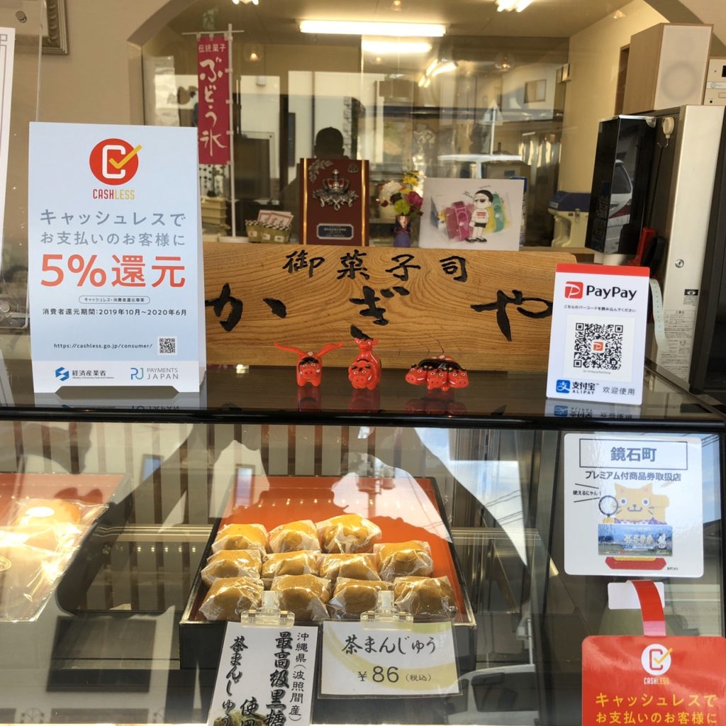 当店「御菓子司かぎや」は「キャッシュレス・消費者還元事業」対象店舗です。