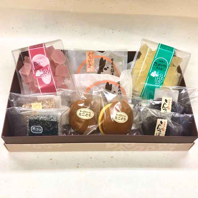 通販可能な商品を全て詰め込んだ和菓子+ぶどう氷をセットにした大満足、贅沢なセット、ご近所の皆様ともシェアして頂ける量になります。